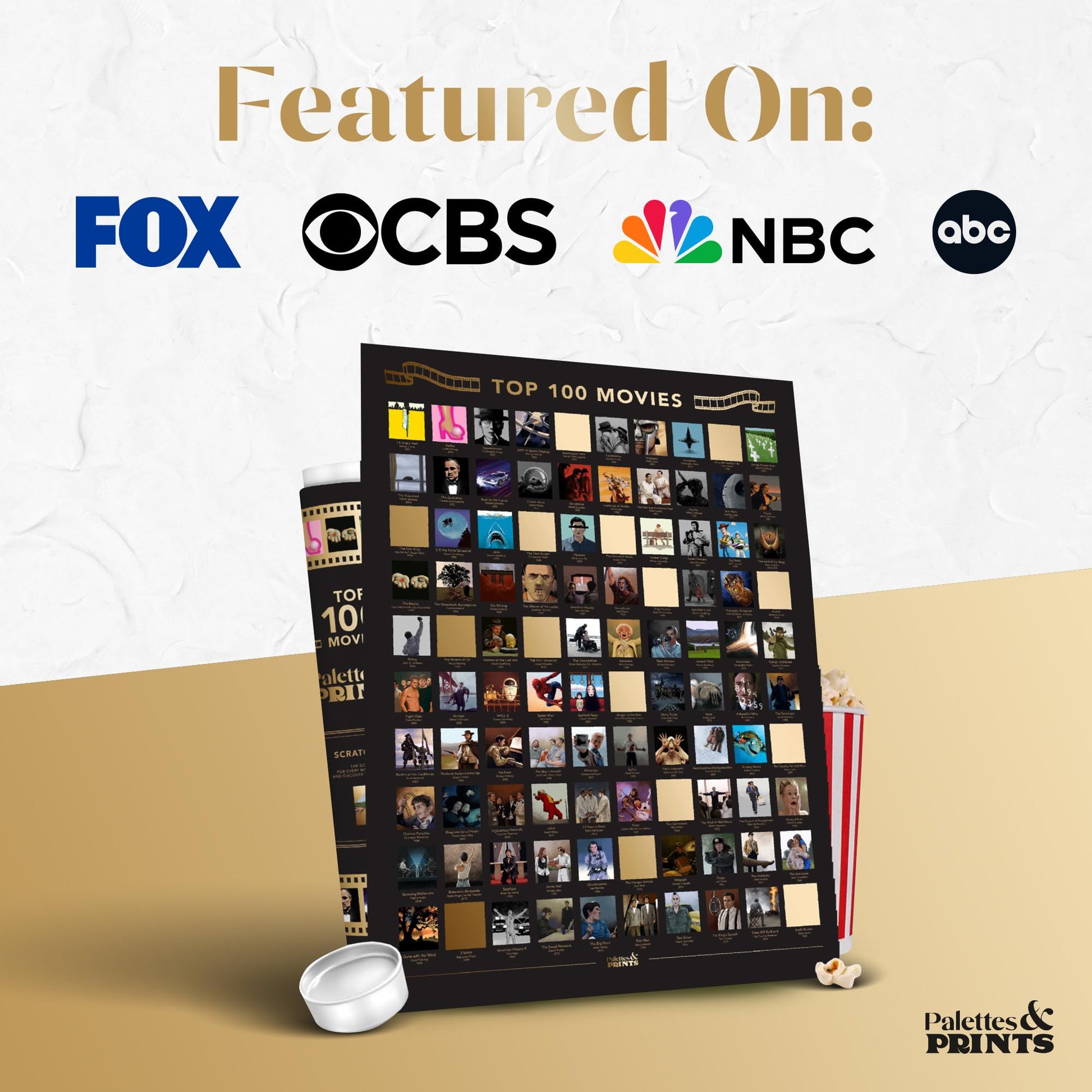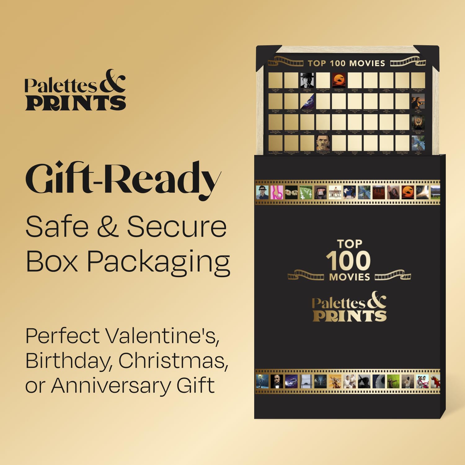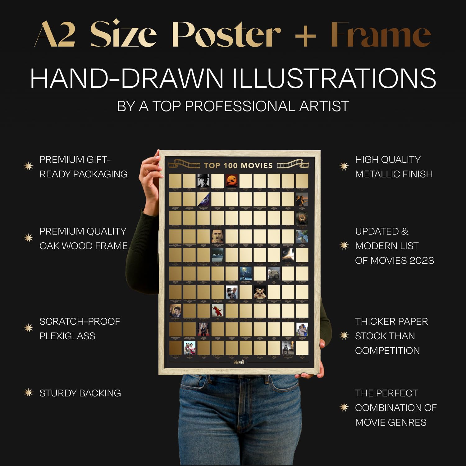Discover the ultimate movie bucket list challenge. Scratch off each film to reveal stunning artwork beneath and track your journey through 100 iconic titles. From cult classics to modern hits, this A2-sized poster turns your wall into an interactive celebration of cinema.
